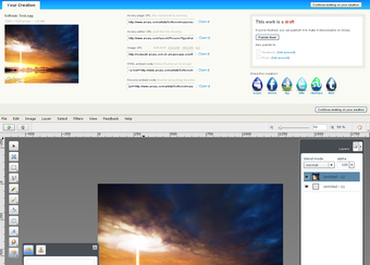 Una vez termines el trabajo, Aviary Phoenix te permite guardarlo y compartirlo por la red, integrarlo en tu propia página web o limitar su disponibilidad a tus amigos.